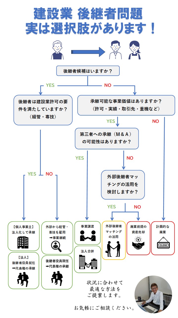 | 専任技術者承継者 | 本人が資格・実務経験を満たす |